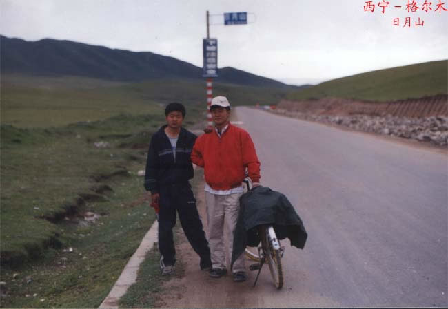 从湟源骑出不久,向路边行人问路时得知,在我们前面约一个小时左右,刚有三个人骑车过去。遇到同行了?我们忍不住兴奋便想去追他们,不由得加快了骑车的速度。也许是我的体力不行了,第一天骑下来就累得不行,再加上一阵猛赶,中午也没有吃饭,所以渐渐地掉了队。同伴姜勇快到日月山时追上他们后,等了许久,我才跟了上来。
